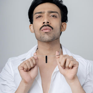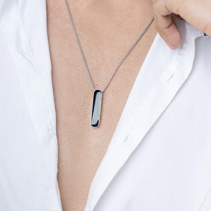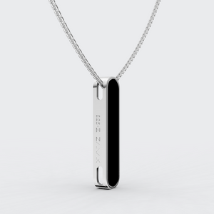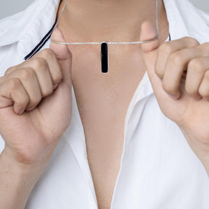 The Orion Pendant features a sleek, bold design with a sharp black centre framed by a shiny finish. Crafted to make a statement, this piece is for those who prefer their style to be as confident as they are.