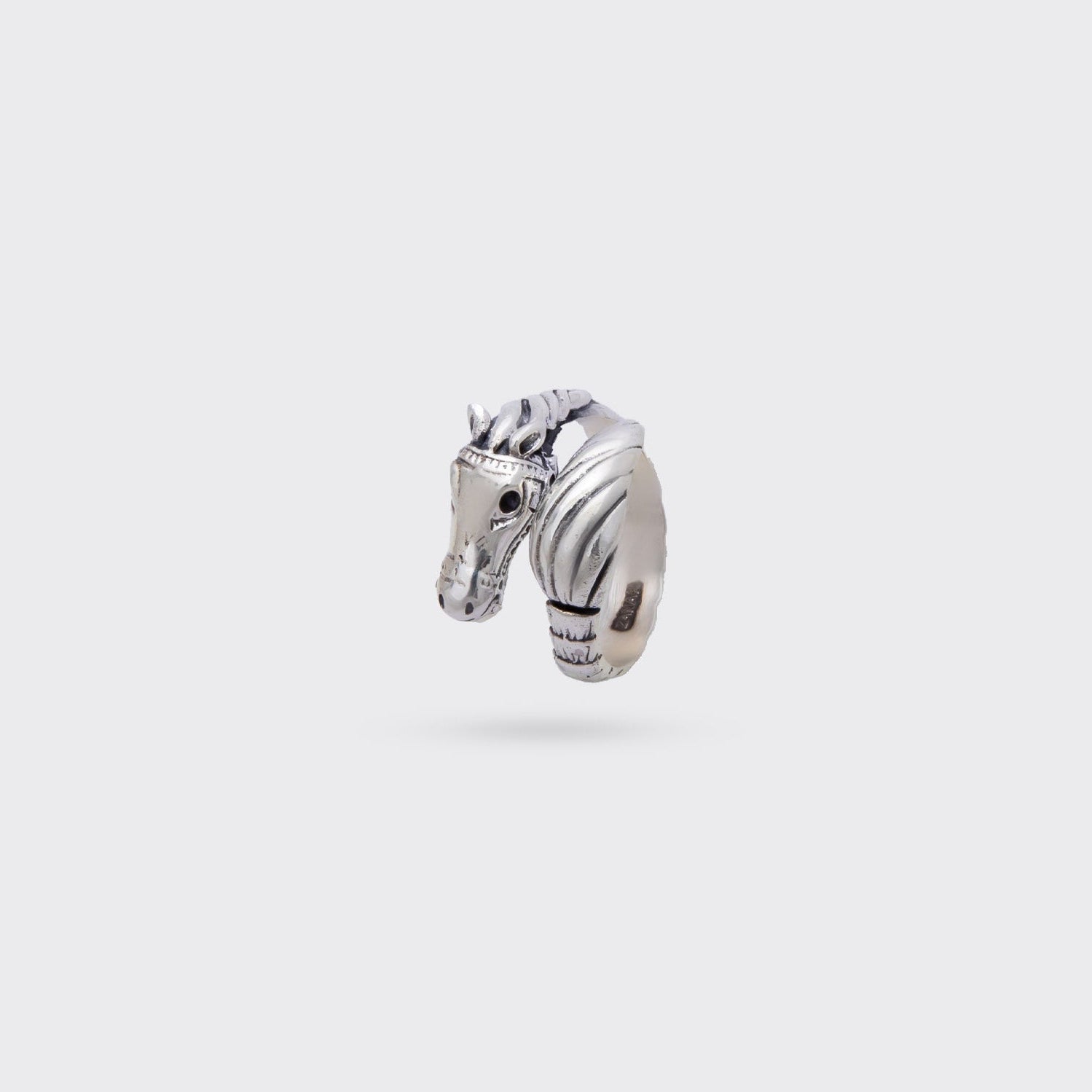 Crafted in pure 925 silver, Steed features a gallant horse head and textured band. Designed for strength and spirit, this adjustable ring captures the raw power of motion.
