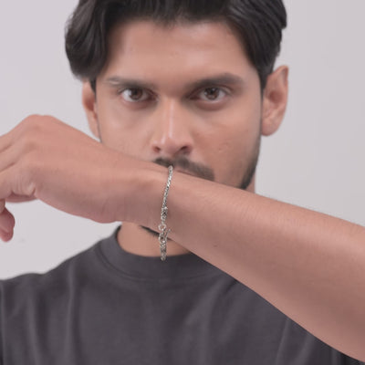 This sterling silver braided bracelet combines bold design with intricate detailing. Featuring decorative clasps, it adds texture and sophistication, perfect for elevating any outfit with understated elegance.