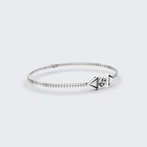 A bold interplay of geometry and tradition. Crafted in oxidized 925 silver with black enamel accents, this bracelet features sharp triangular edges framing a diamond-shaped centerpiece. Sleek, 3mm slim, and designed for everyday style with a modern twist.
