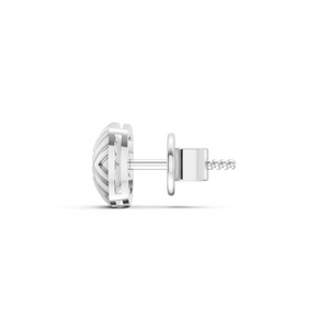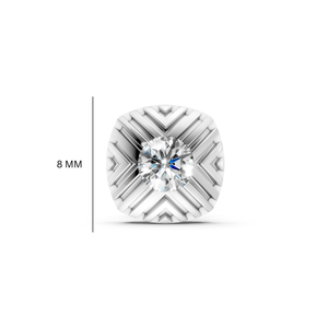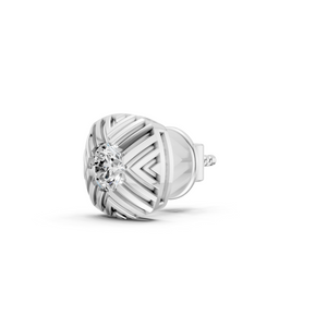 With engraved chevron grooves and a centered round lab diamond, these silver studs strike the right balance between edgy design and understated shine. Strong lines, subtle flex.