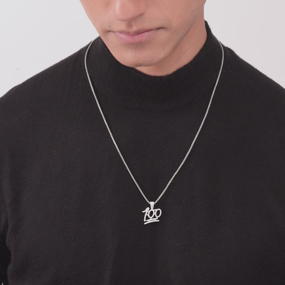 Crafted in premium 925 sterling silver and studded with shimmering stones, this pendant showcases the iconic "100" emoji design. Perfect for expressing authenticity, confidence, and keeping it real—always.