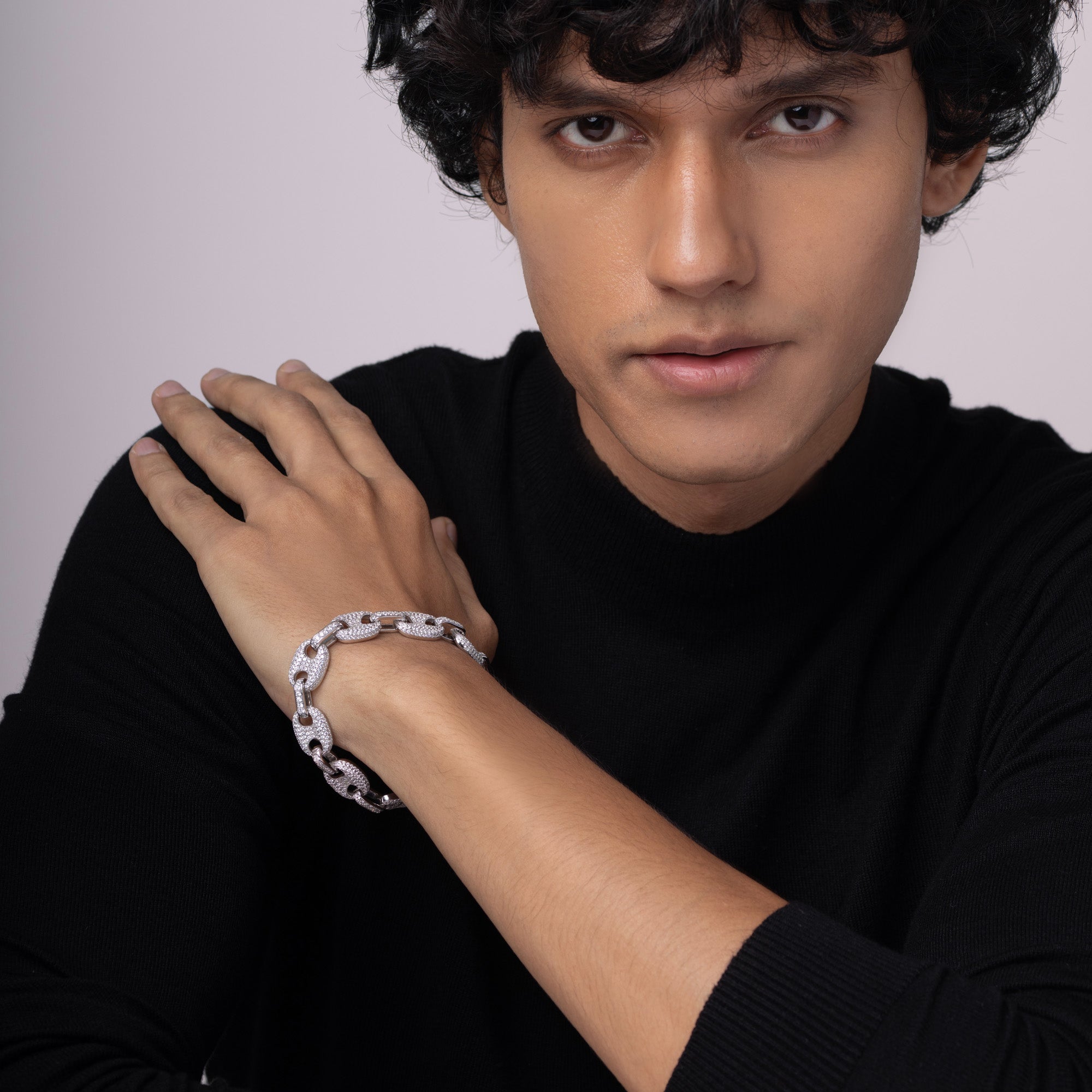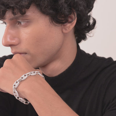 Crafted in premium 925 silver, this bold link bracelet features a dazzling pavé finish for an opulent statement that’s perfect for parties, casual fits, and everyday flex.
