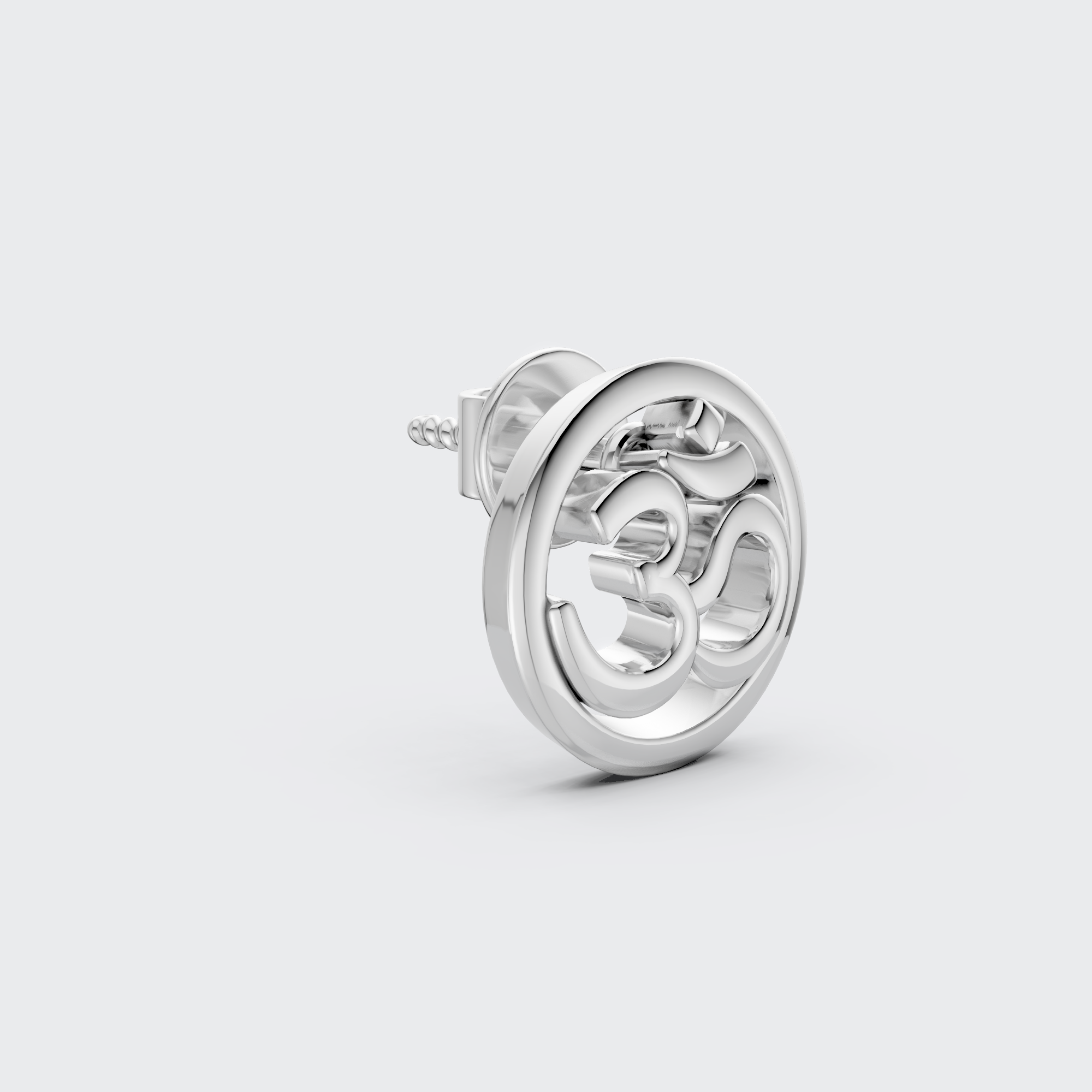 A symbolic and minimalist stud with an Om symbol set in silver, this piece blends spirituality with modern design, offering both balance and serenity in a sleek, contemporary form.
