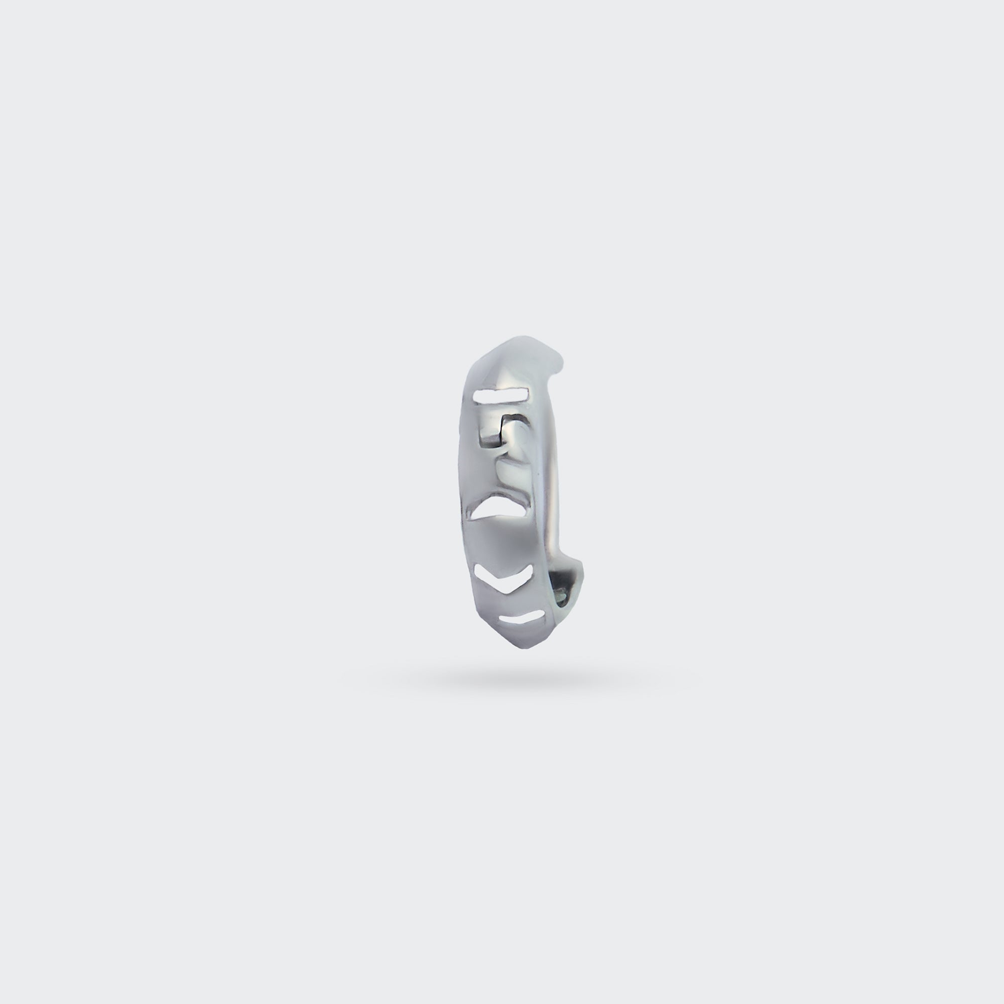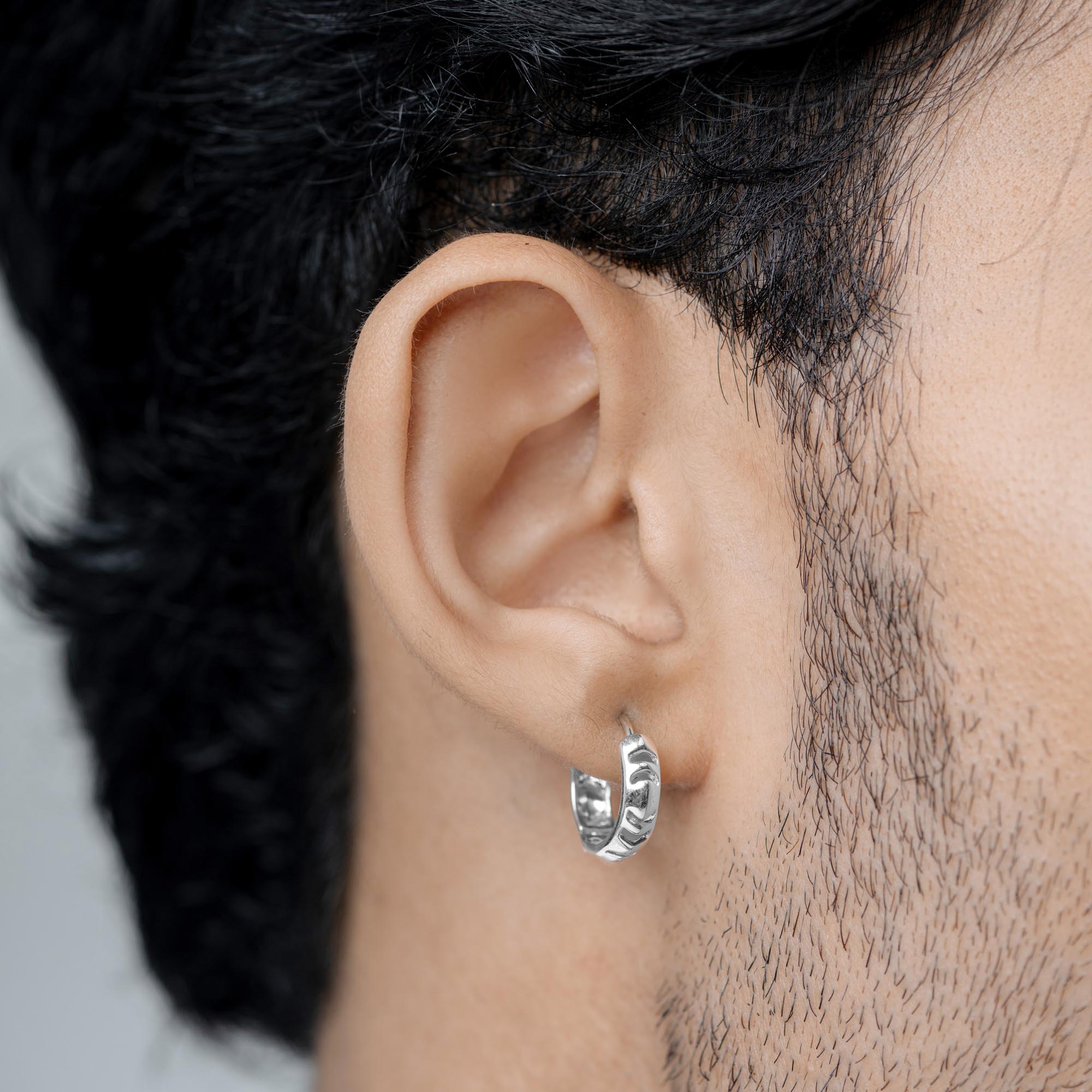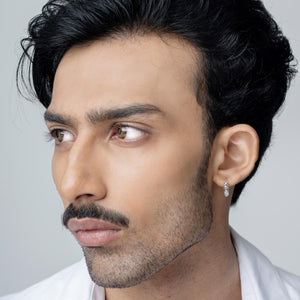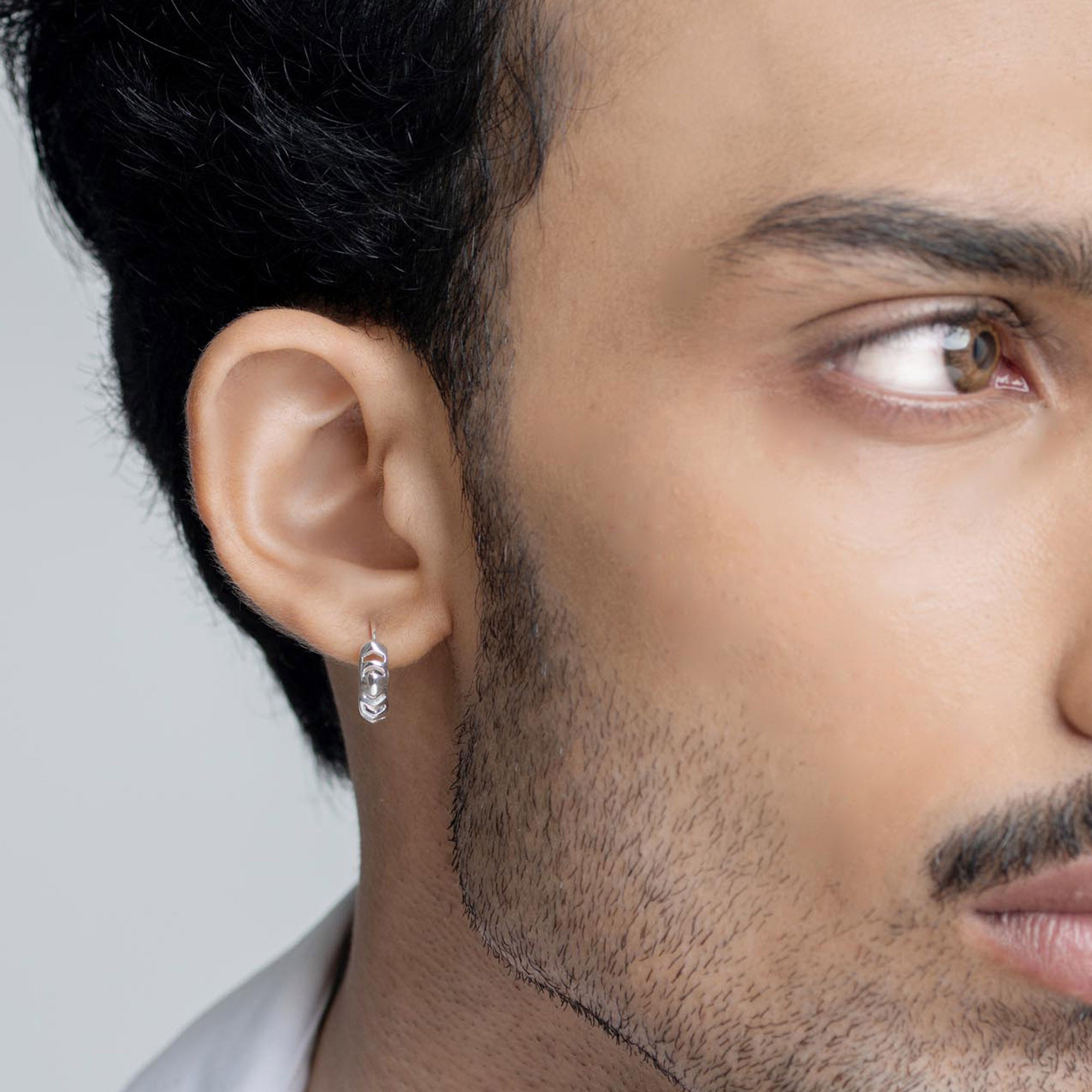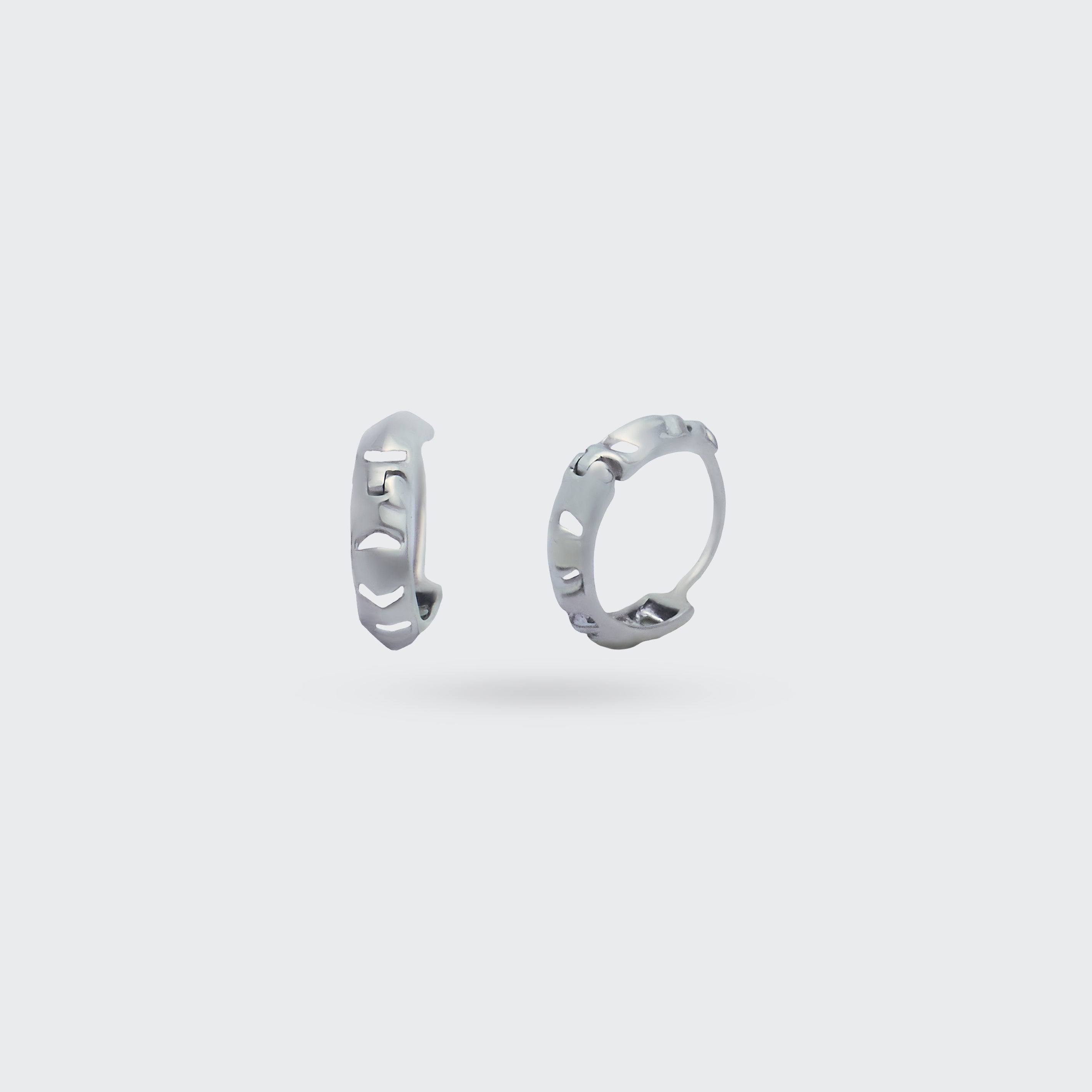 A  hoop earring featuring a modern geometric design, combining clean lines with sharp angles. This piece radiates bold sophistication, perfect for making a statement without overwhelming your look.