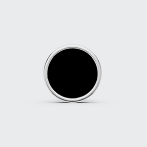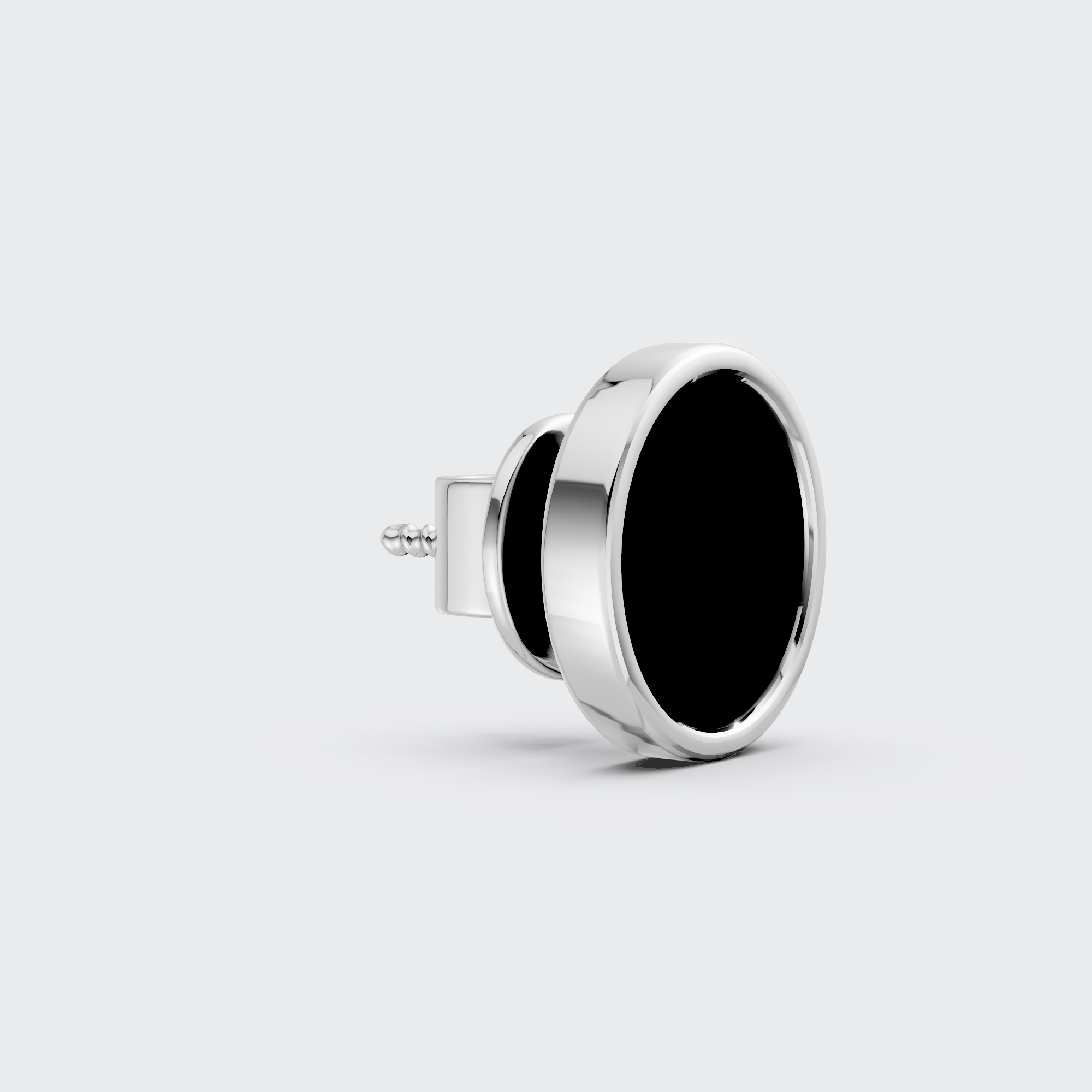 A classic design with a striking geometric pattern, this stud features black and silver contrasts, making it a clean and modern accessory for everyday wear.
