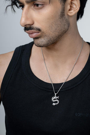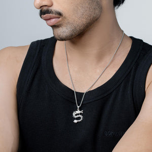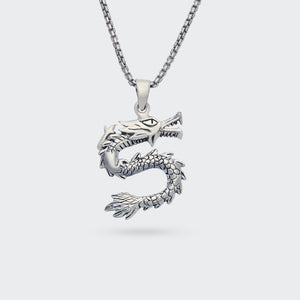 A fierce dragon's head in motion, symbolizing strength and vitality. This intricate silver pendant is perfect for adding boldness to your accessory collection.