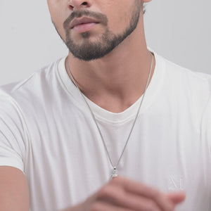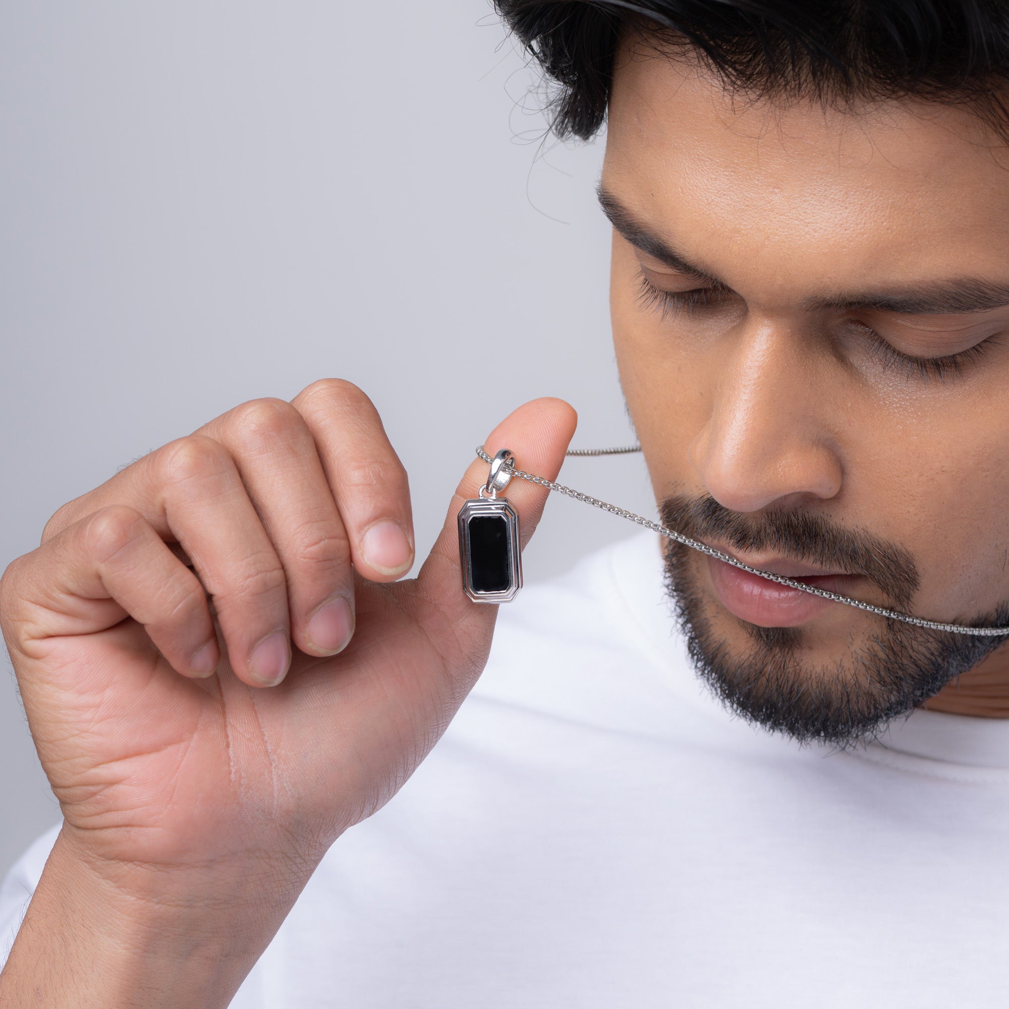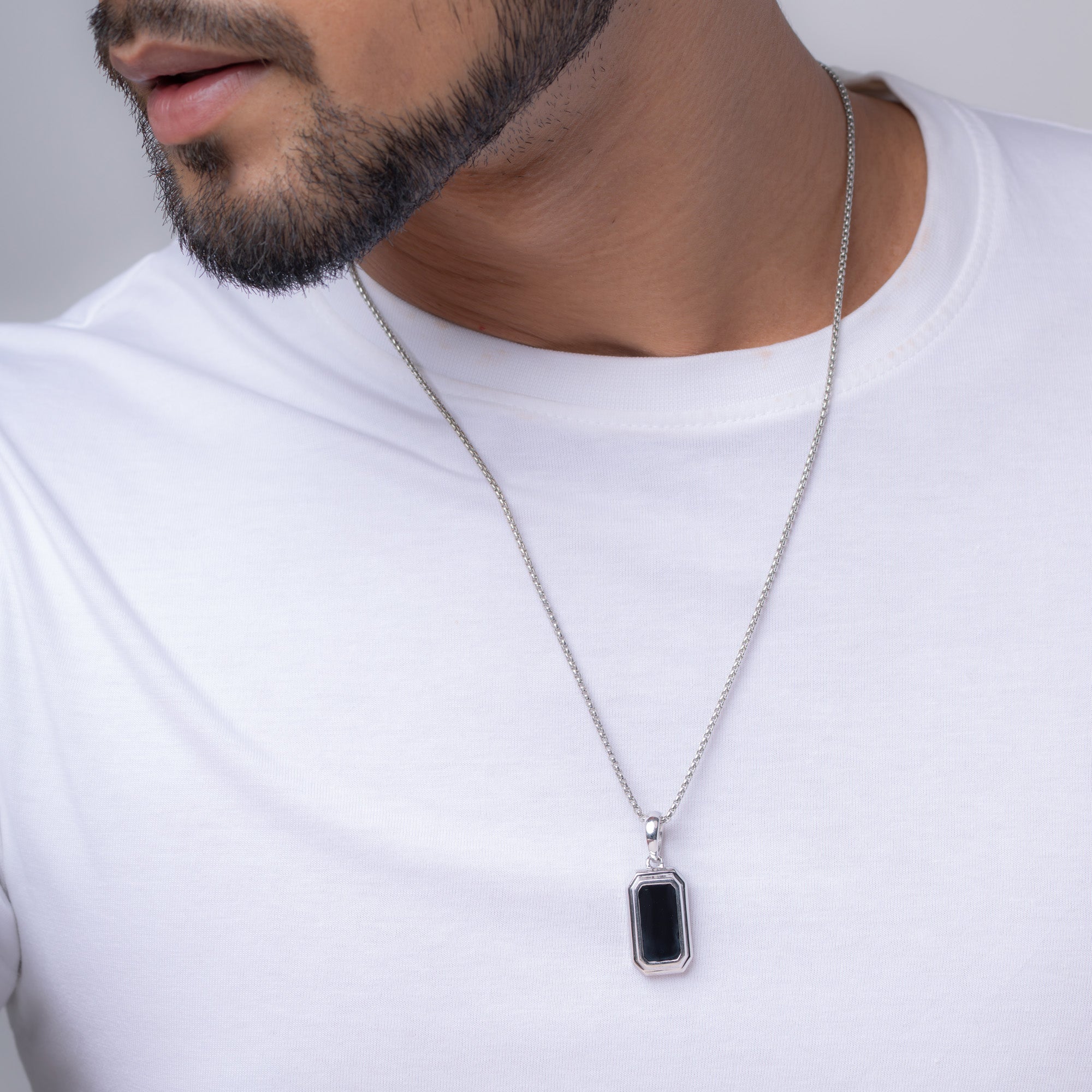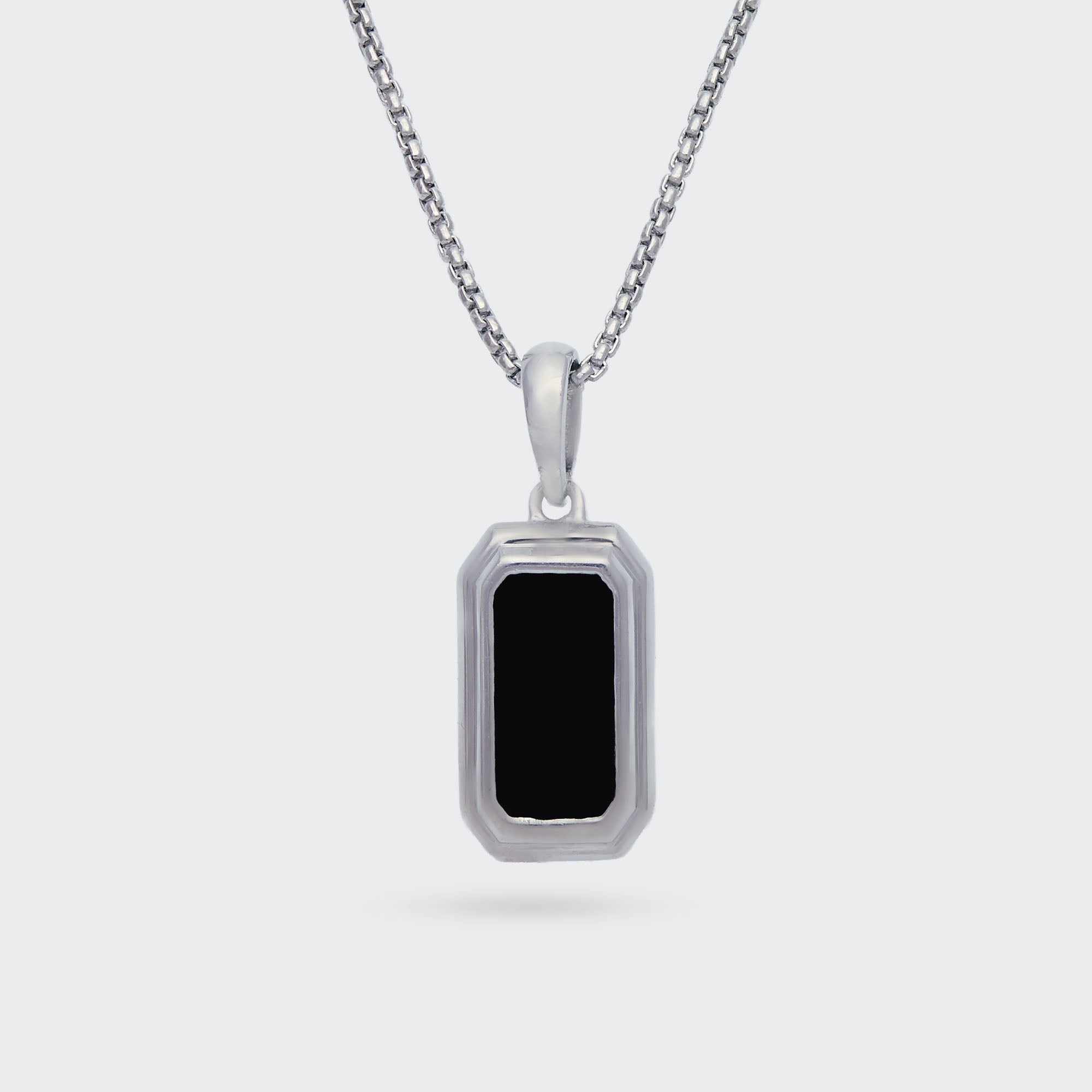 Featuring a bold black inlay set in a sharp-edged 925 silver frame, this pendant speaks power with minimalism. Built for those who prefer clean cuts and darker moods.