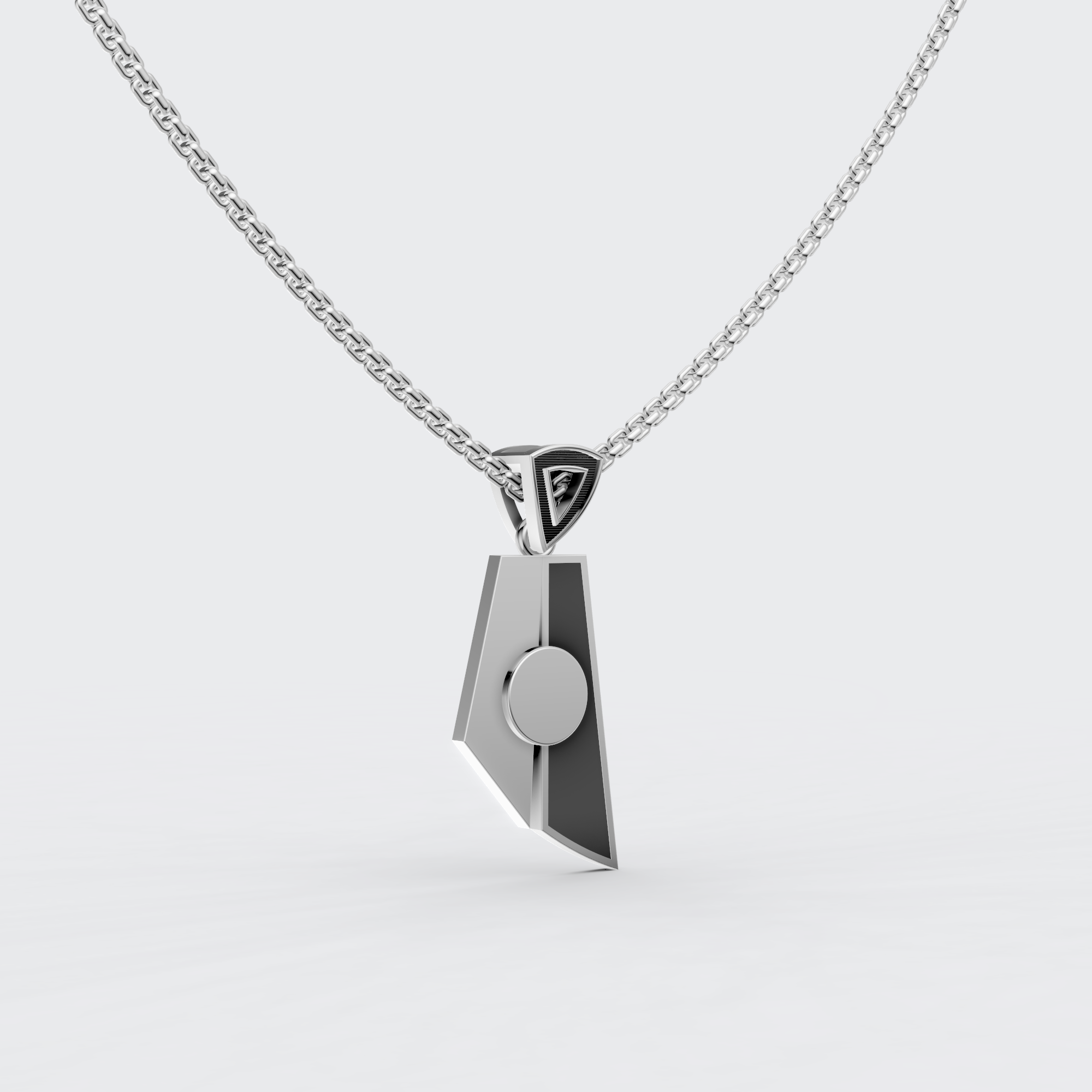 A sleek and modern pendant with contrasting lines and a geometric design. Crafted in 925 silver, this piece exudes sophistication and sharp style.