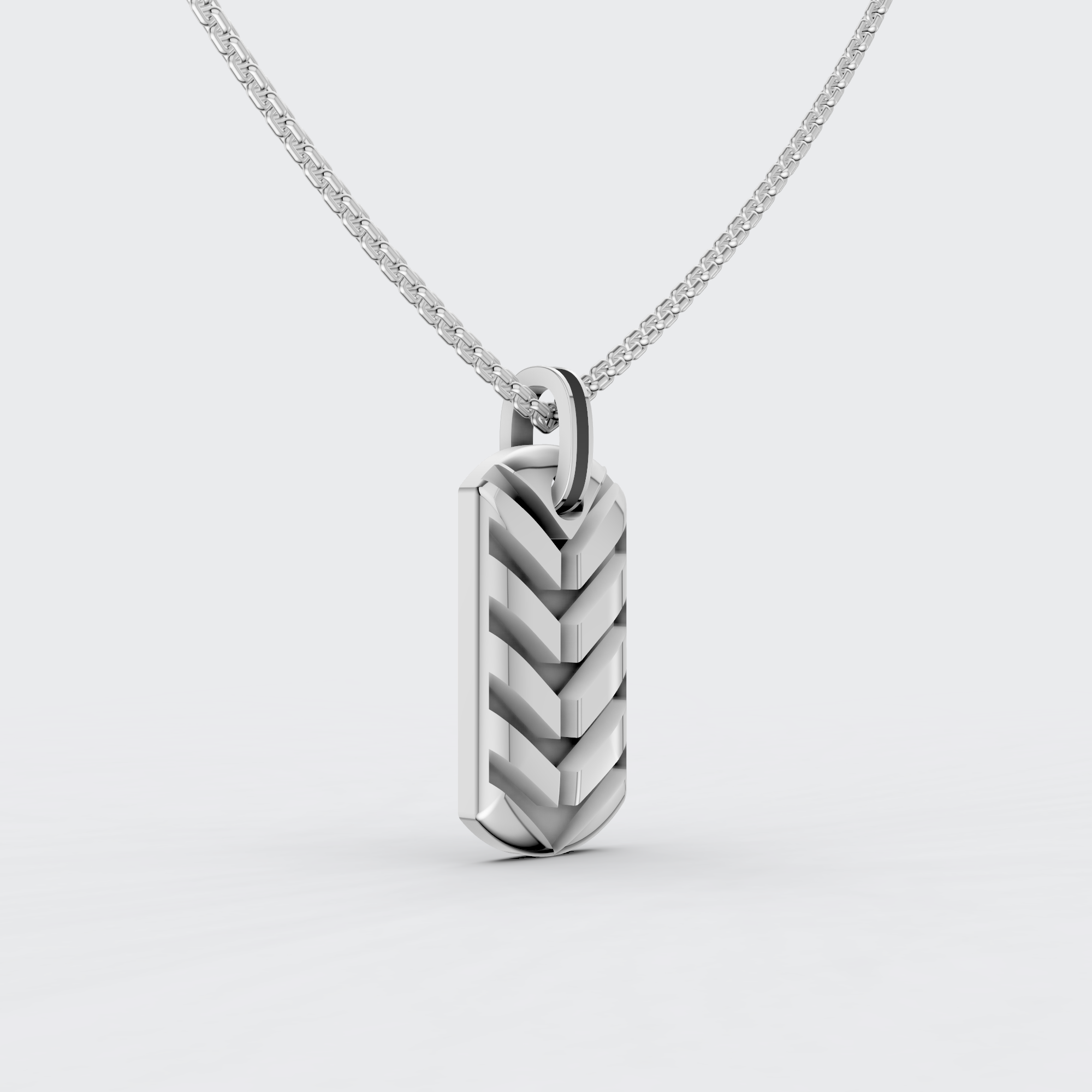 Clean lines, sharp direction, and a mirror-finish chevron pattern—this tag is made for men who move with purpose. Crafted in 925 silver, it speaks confidence without saying a word.