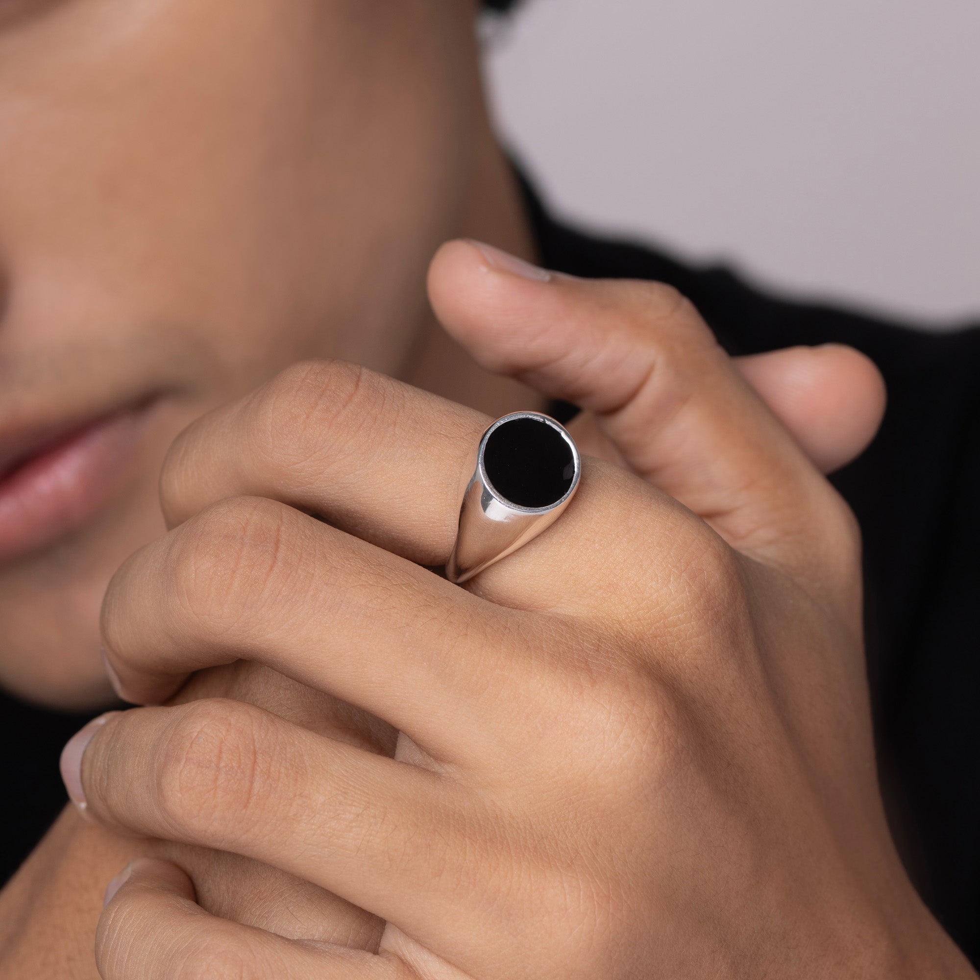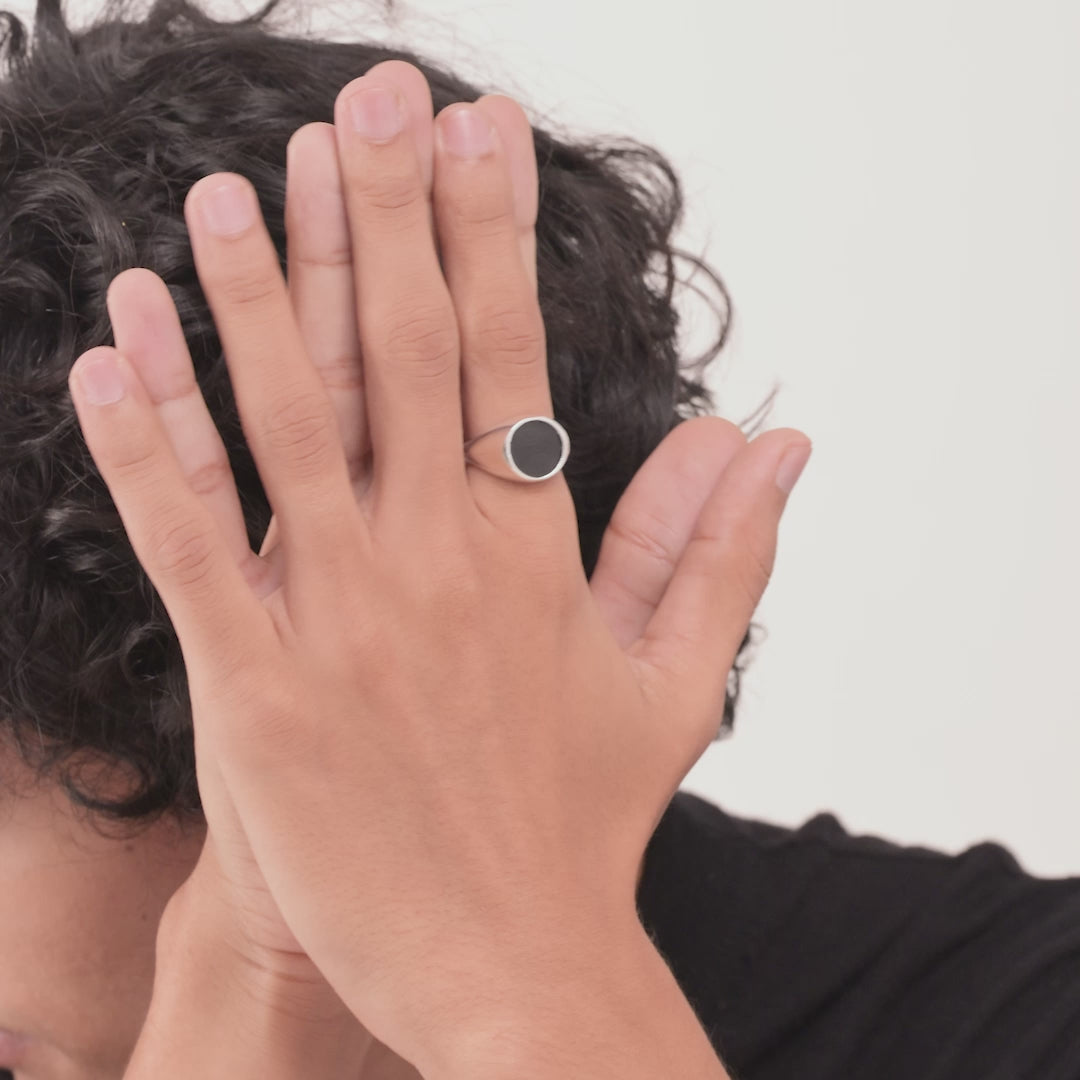 Minimal yet powerful, this polished sterling Black Seal ring features a smooth black enamel face. Its sleek silhouette makes it a versatile everyday accessory with a touch of mystery.