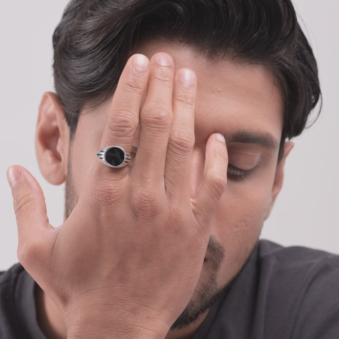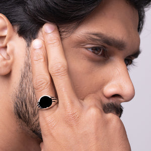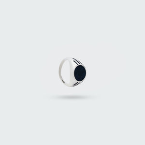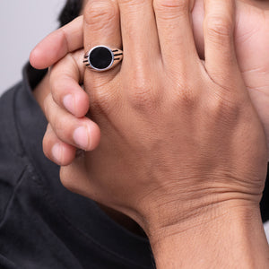 Minimal yet commanding, this 925 silver ring features a round black enamel face and sharp line details. Built for men who lead with confidence and subtle flair.
