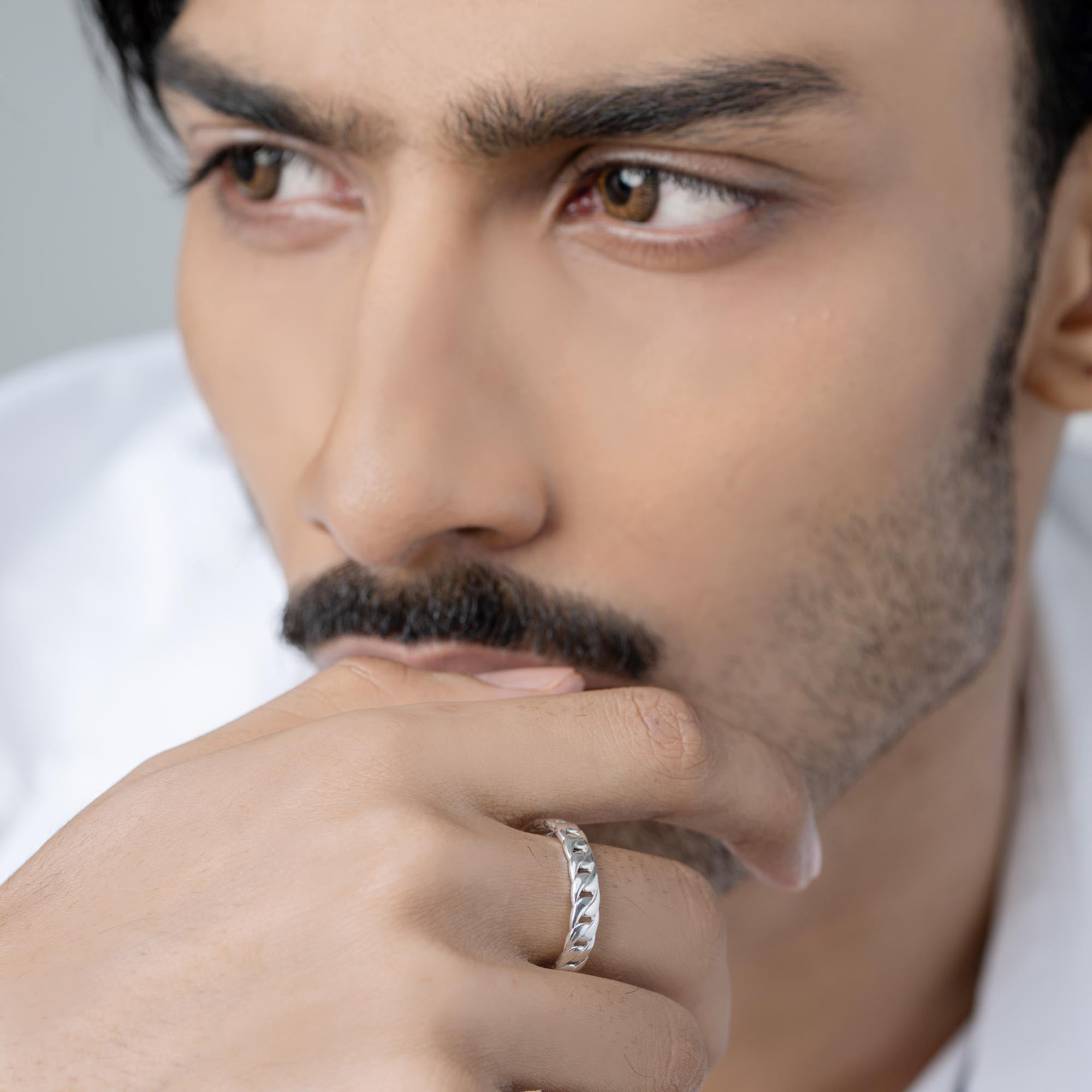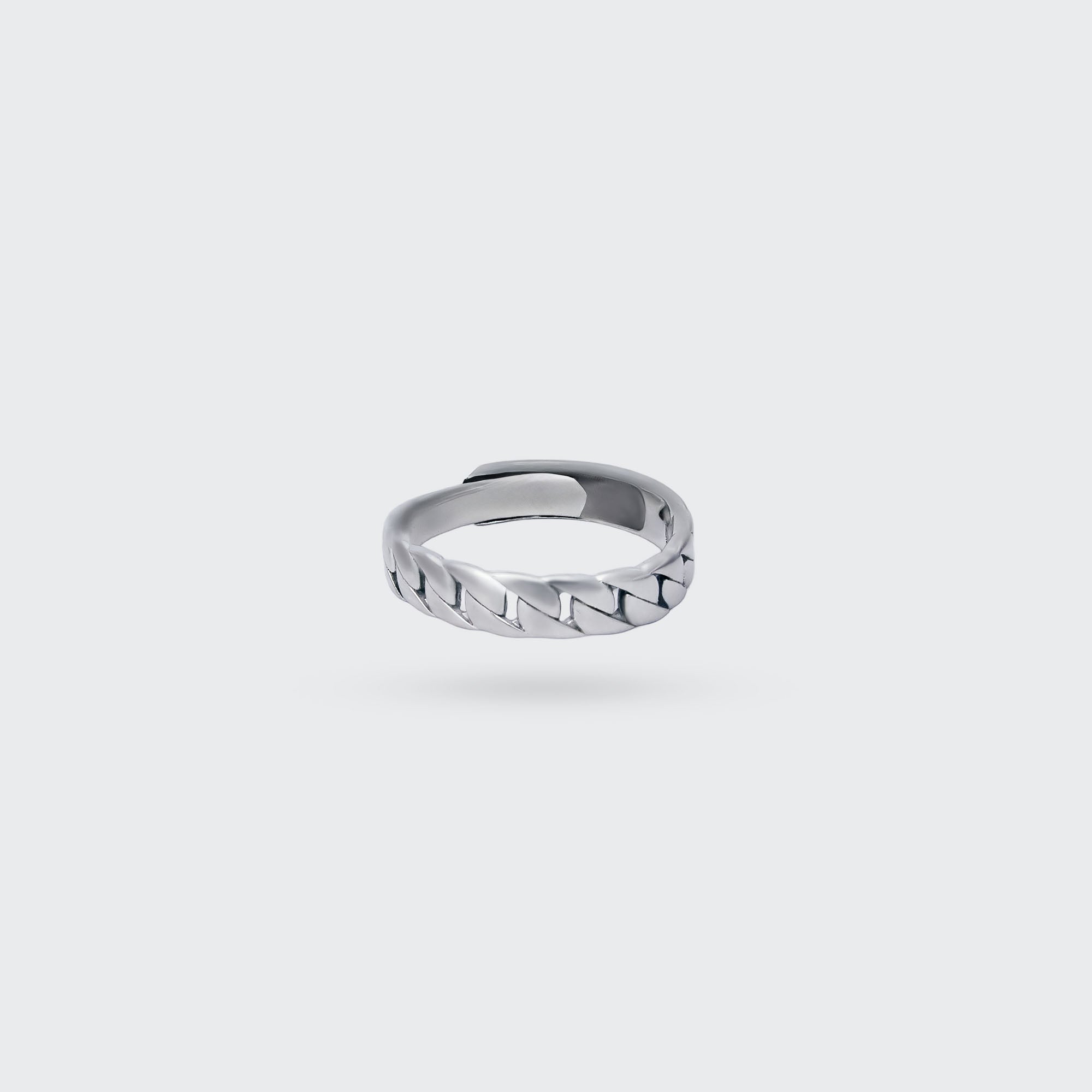 Inspired by classic Cuban links, this ring fuses movement and structure into a sleek, modern form. A standout piece for daily wear, crafted with precision in 925 silver.