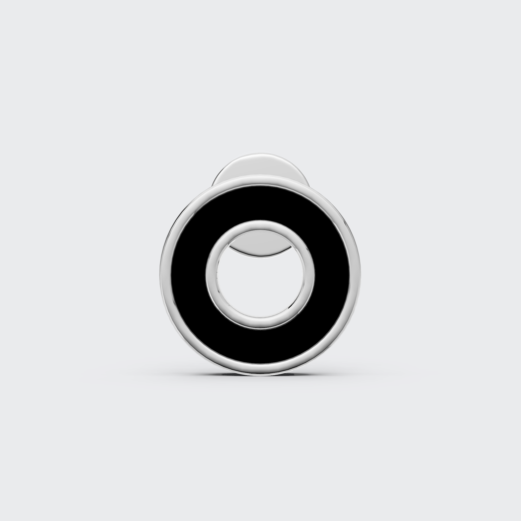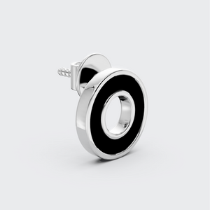 A sleek, silver stud with a black inner circle, offering a bold minimalistic look. Perfect for those who prefer classic, refined elegance with a touch of edge.