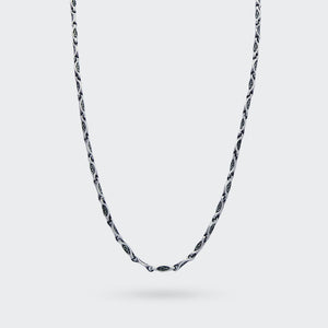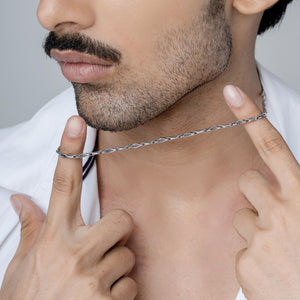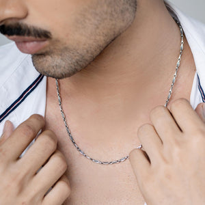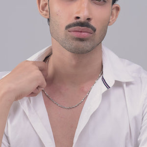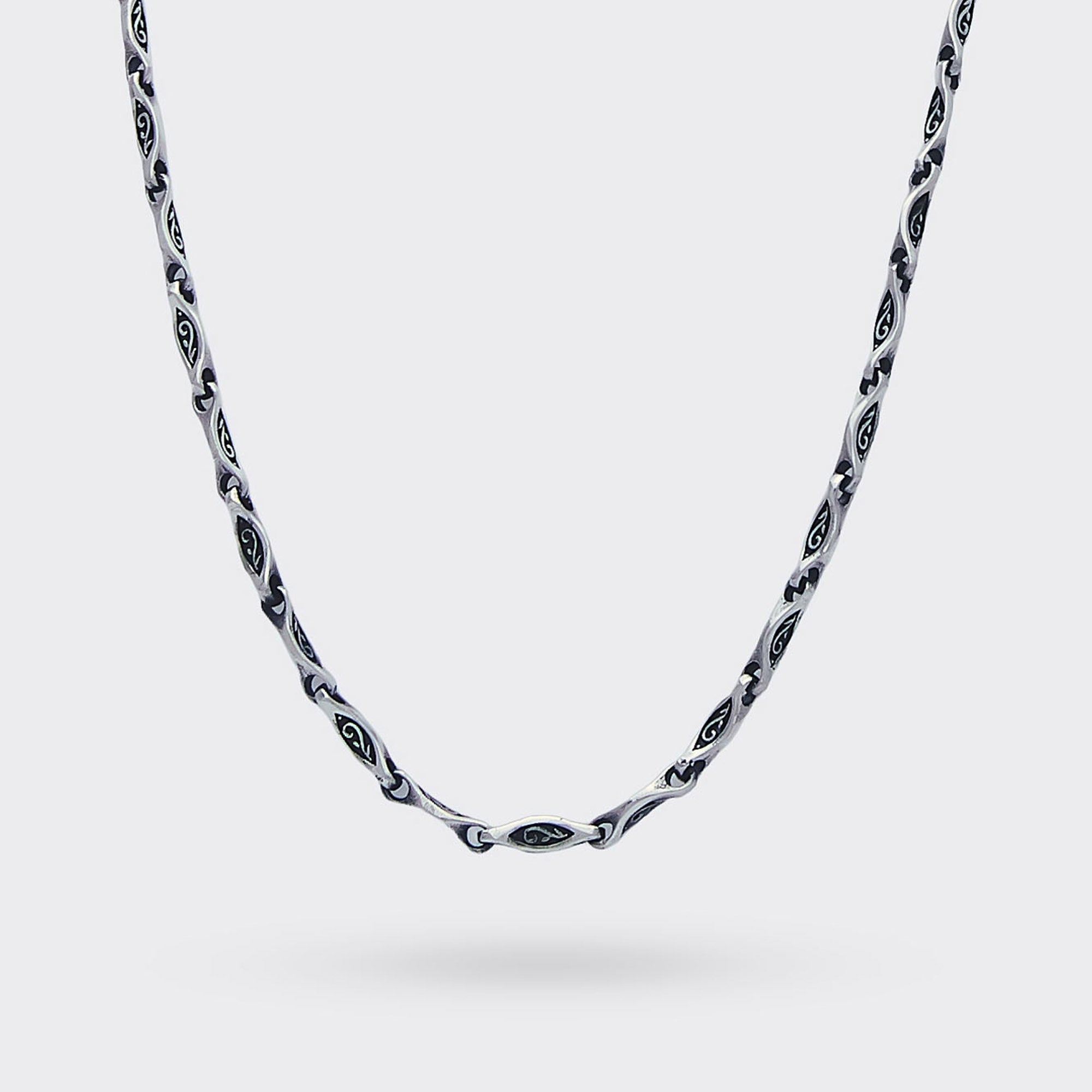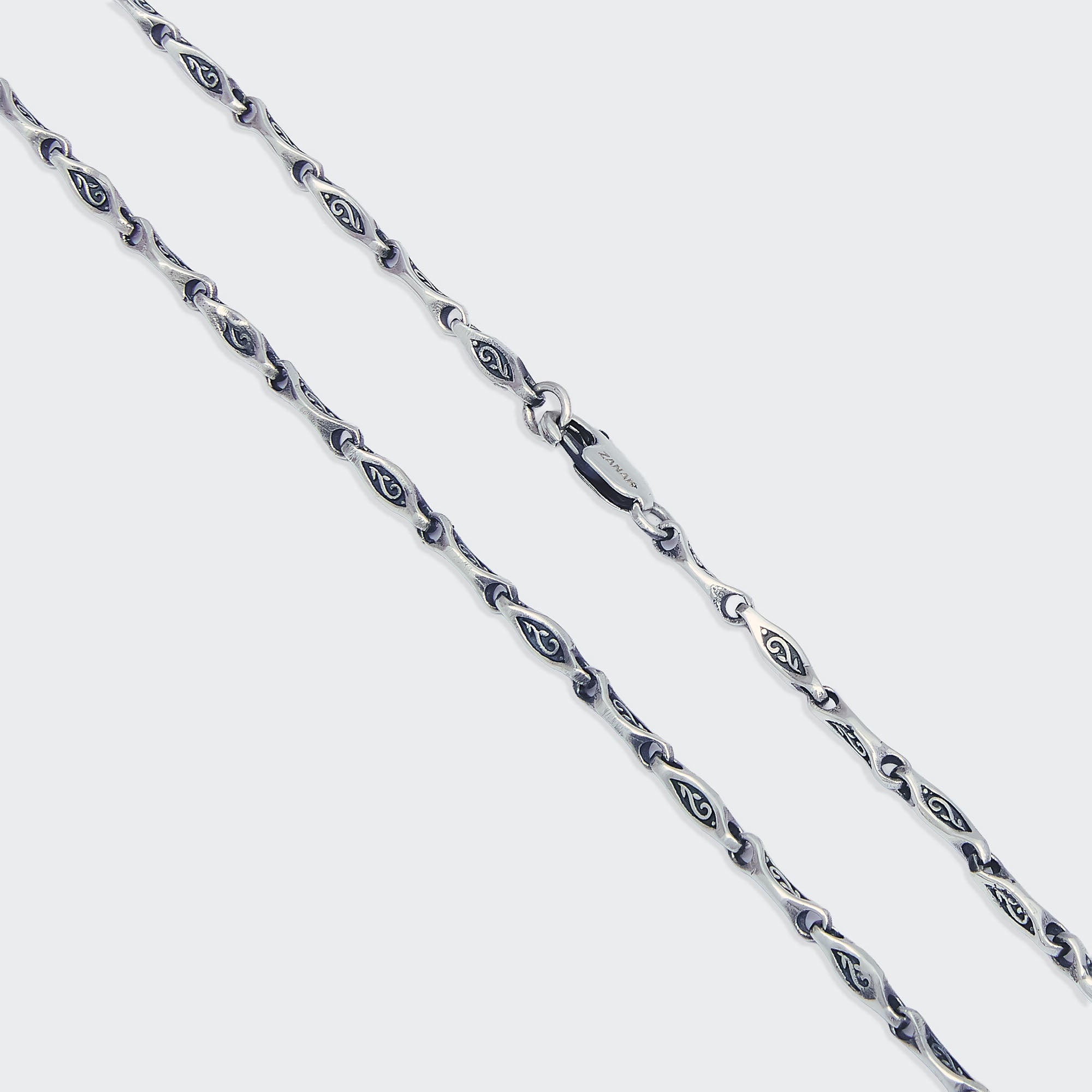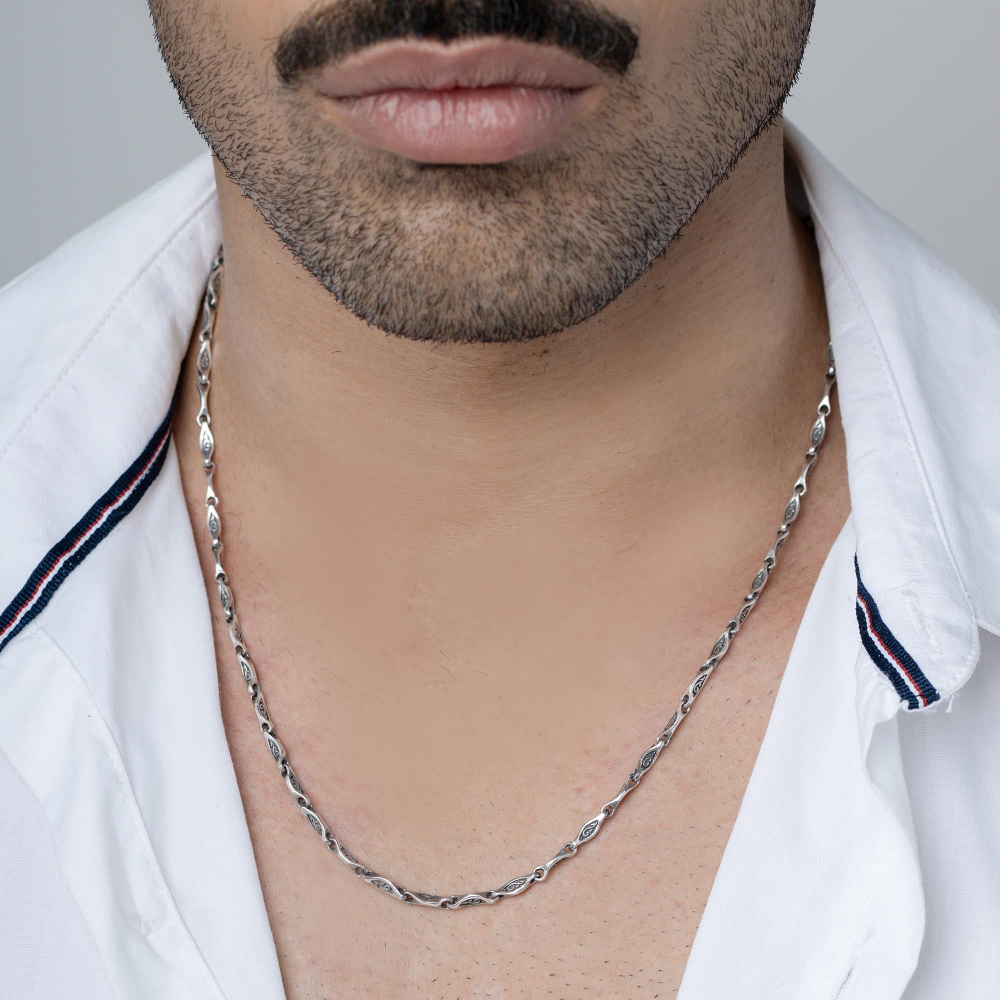 This sleek chain has intricate eye motifs. Crafted from sterling silver, it’s all about raw energy and unmatched style. Wear it, and let the world see the power you hold.