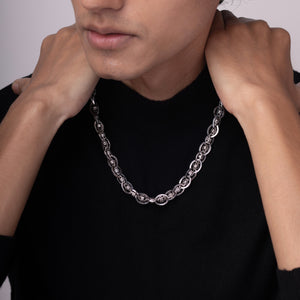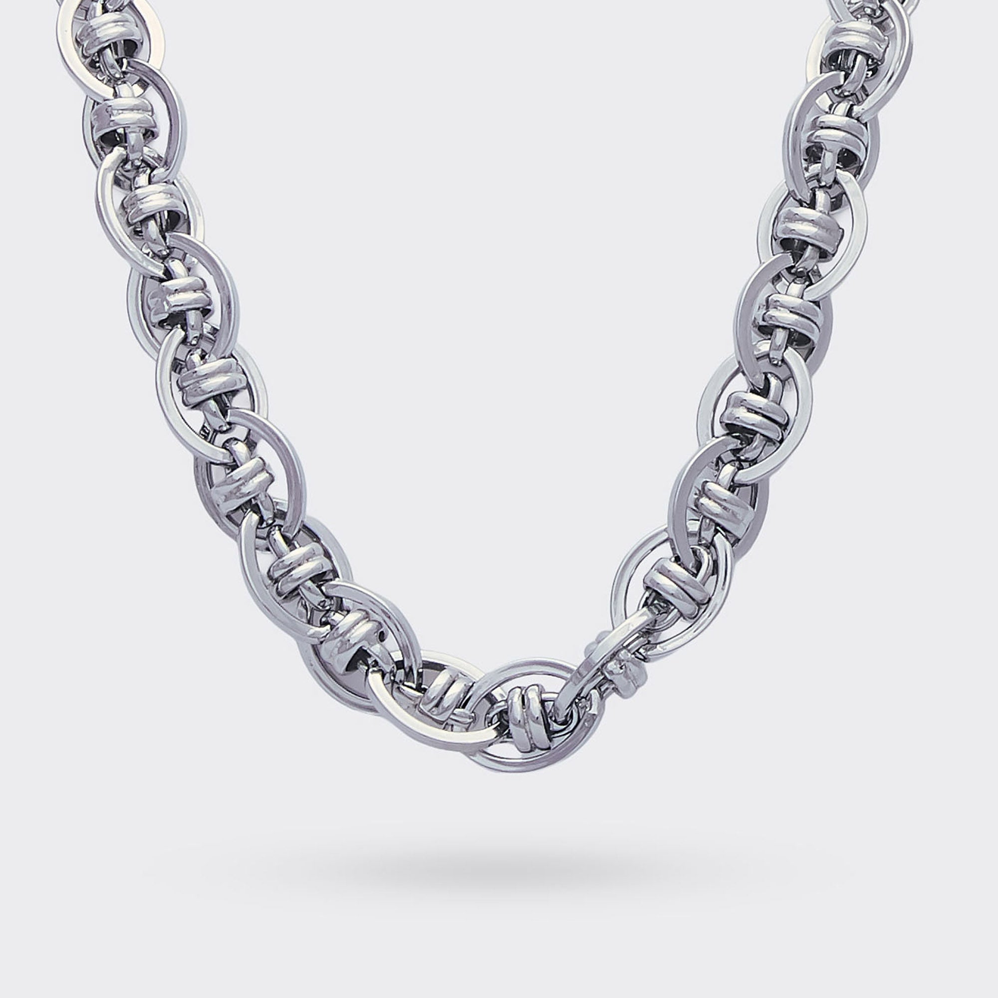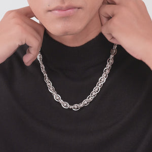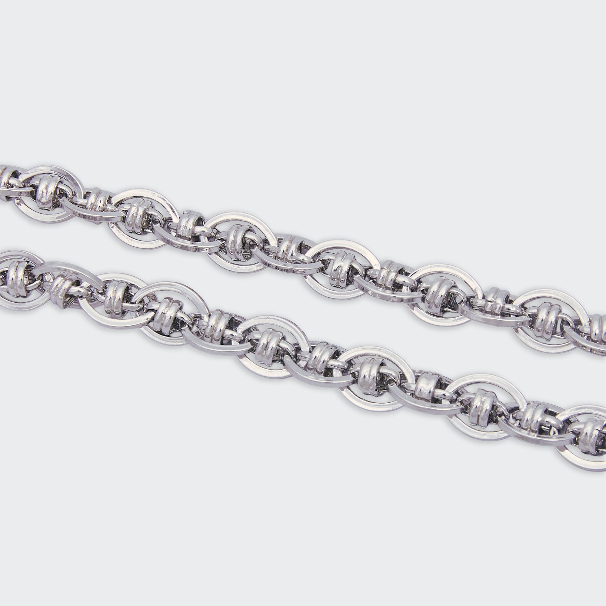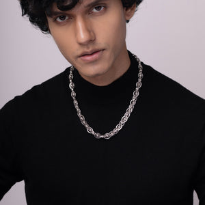 The infinity knot chain combines sterling silver with intricate interwoven links, creating a bold yet refined statement. Crafted for those who appreciate elegance and strength, this bracelet stands out as a symbol of endless sophistication.