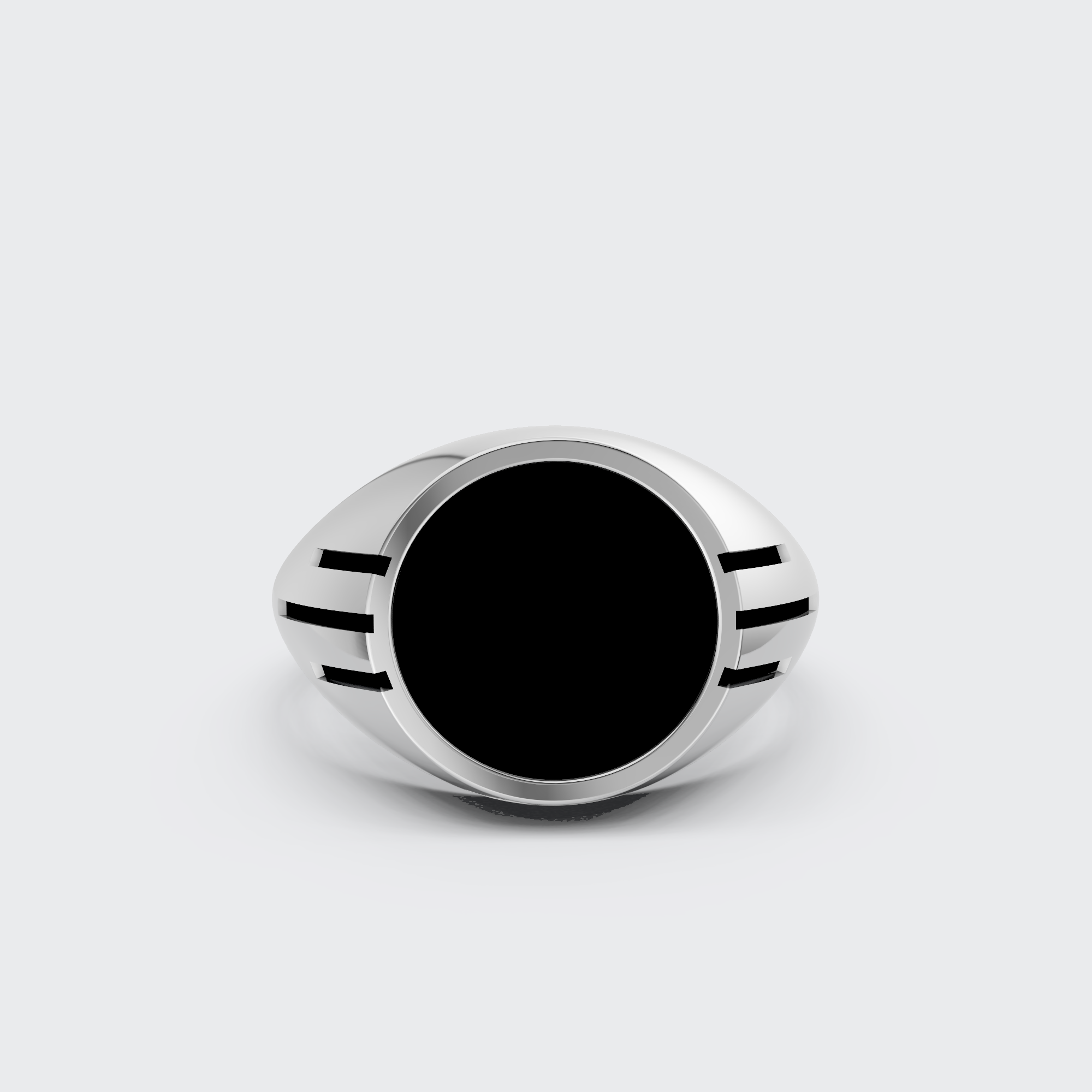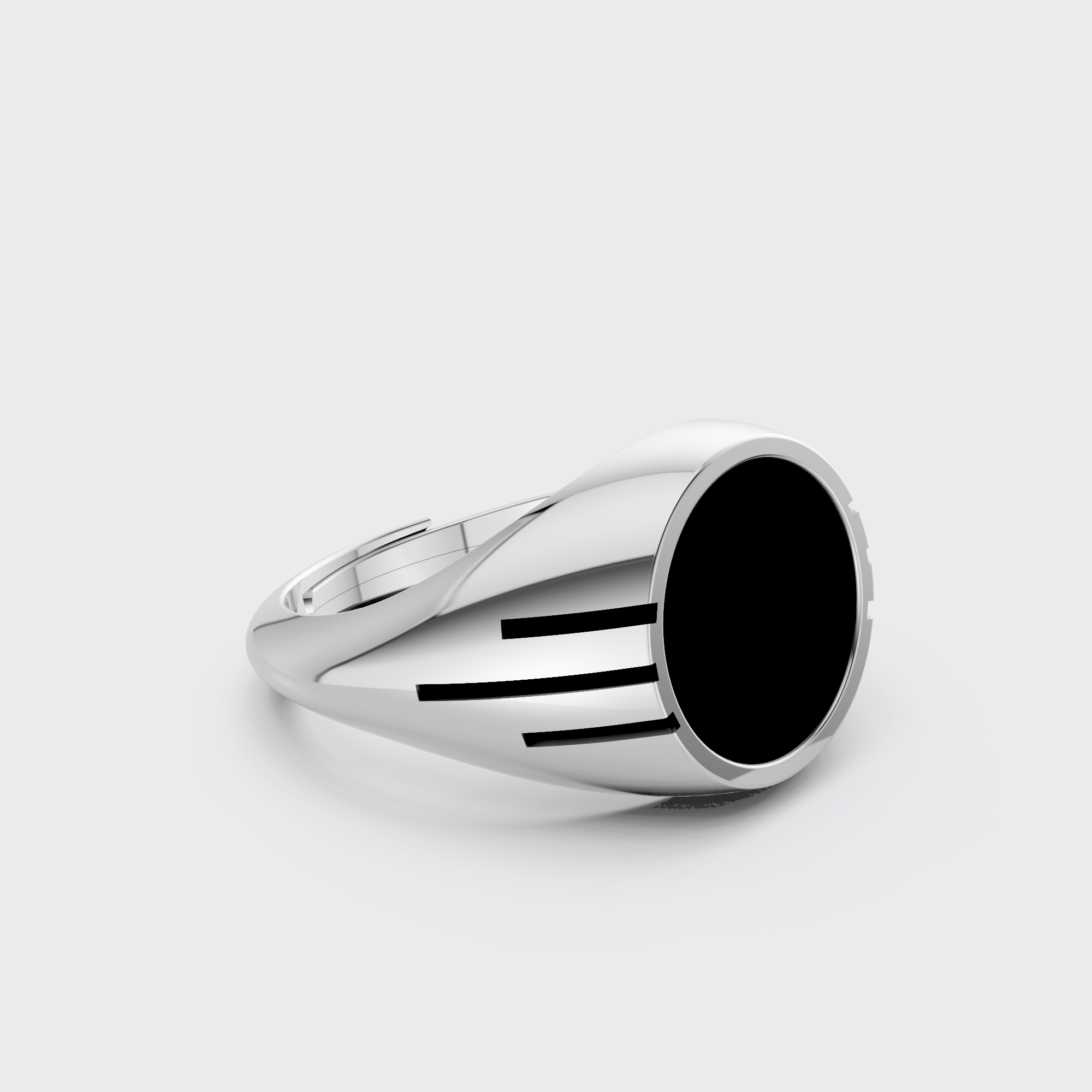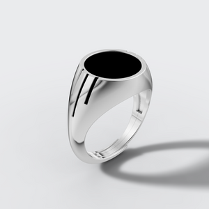 Minimal yet commanding, this 925 silver ring features a round black enamel face and sharp line details. Built for men who lead with confidence and subtle flair.