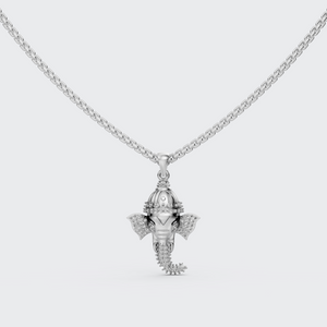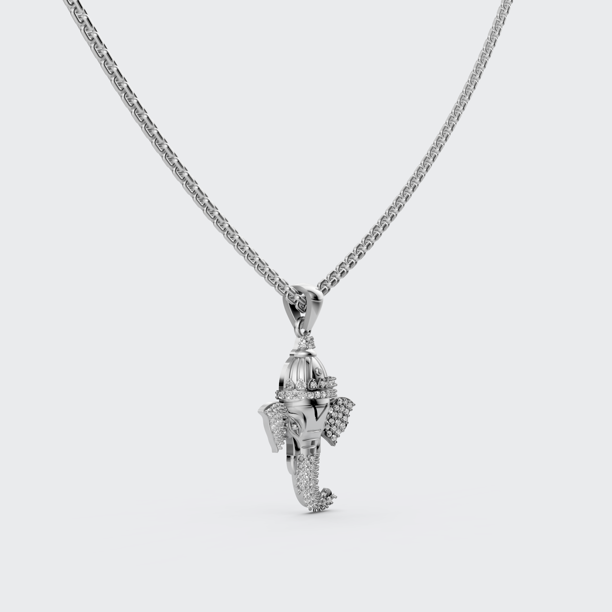 A beautifully crafted pendant featuring a detailed Ganesh figure, embellished with sparkling stones. The piece represents positivity, strength, and blessings, perfect for a symbolic, spiritual touch.