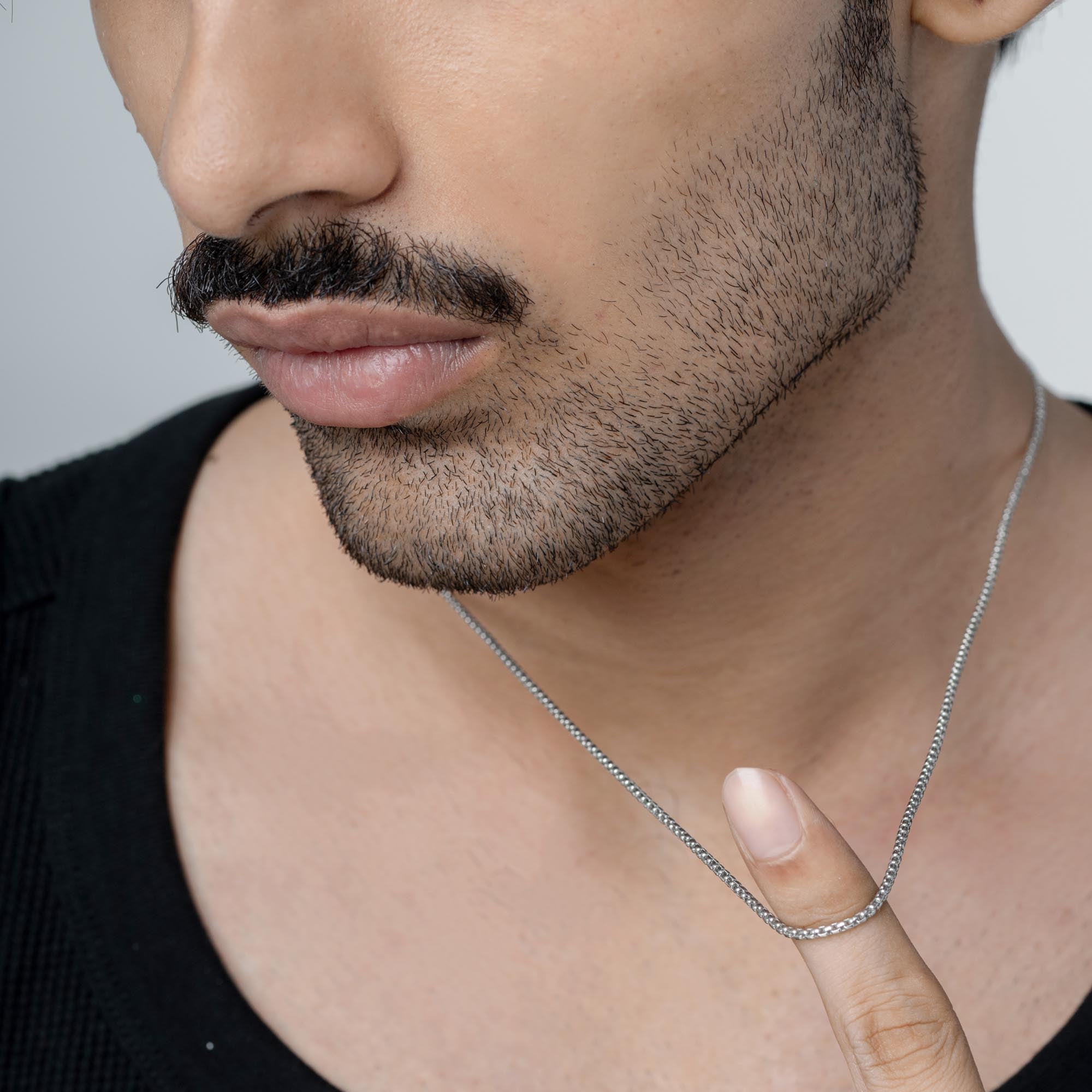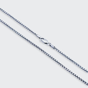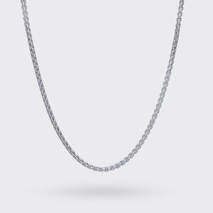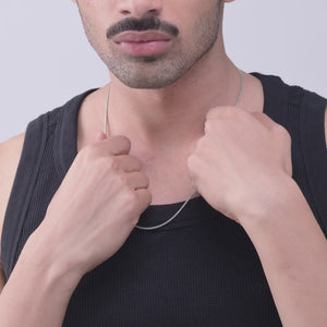 This sleek silver curb link chain features polished, interconnected links and a secure lobster clasp. Its elegant design is perfect for everyday wear, ideal for pairing with pendants or wearing solo.
