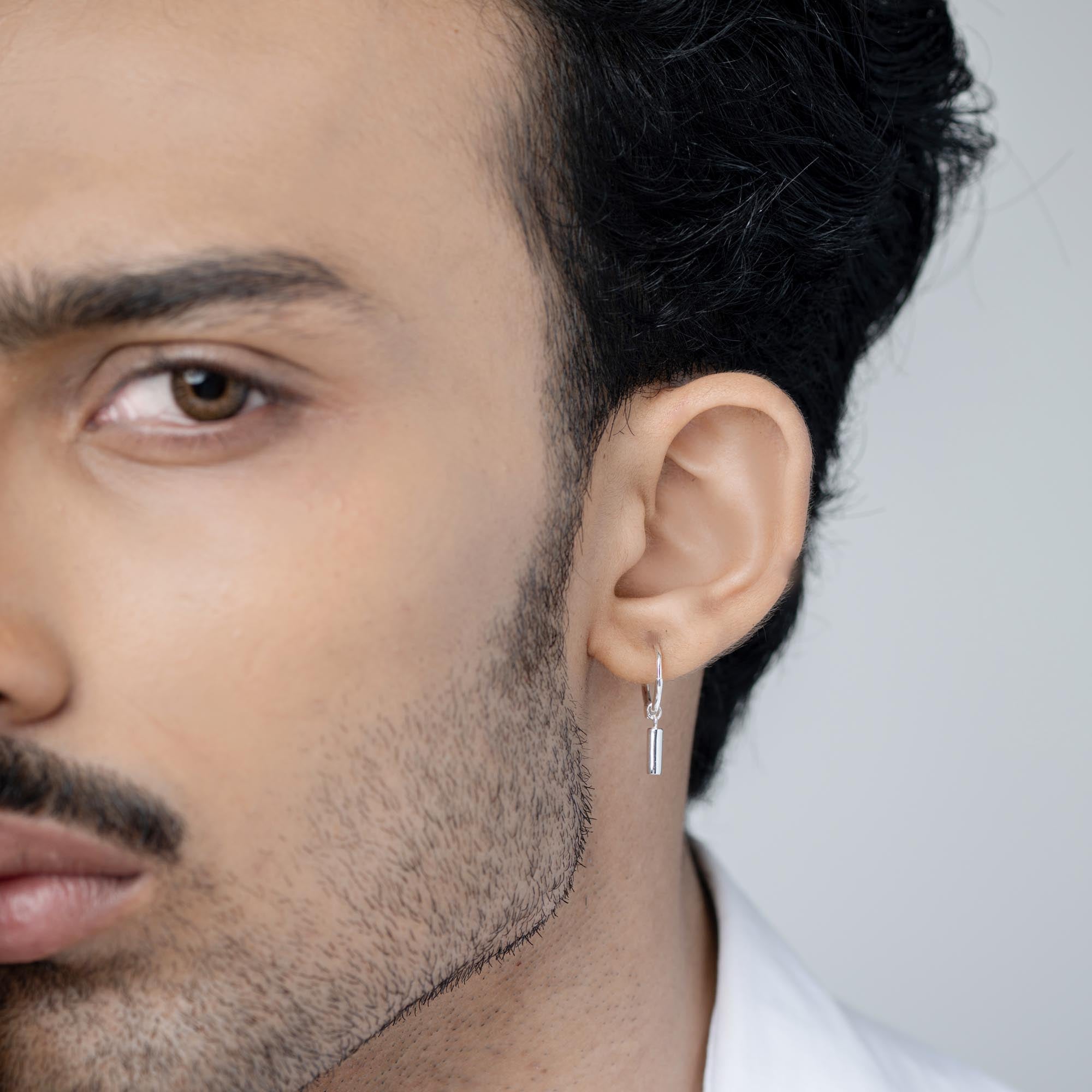 This 925 silver hoops feature a sleek vertical bar drop for a clean, modern edge — perfect for every streetwear or casual outfit look.